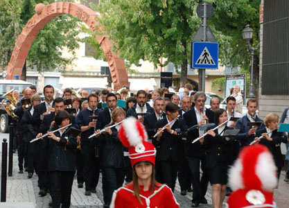Gli ottanta musici, con tutta la loro allegria, e le majorettes con le loro evoluzioni, sono quindi scesi a Palazzo Botton suonando e sfilando nel concentrico, accompagnando i visitatori incuriositi che si sono accodati raggiungendo i vari punti espositivi. Le bande hanno suonato sotto all'Arco di Pomodoro e di fronte alla stufa del Nespolo, chiudendo il pomeriggio di fronte alla Casa della Musica. Gli appuntamenti musicali proseguiranno domenica 3 ottobre con l'esibizione della Banda Musicale di None e della Strange Band afc per la cerimonia di chiusura della Mostra della Ceramica.