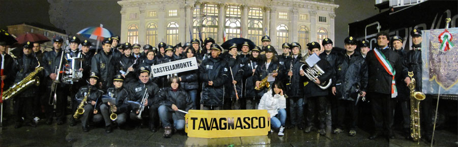 Vista la coincidenza con un altro servizio musicale in Valchiusella, la Filarmonica di Castellamonte si è divisa in due e a Torino ha sfilato insieme ai ragazzi della banda musicale di Tavagnasco, consolidando così la collaborazione delle due istituzioni. La direzione è stata affidata al neo maestro di Tavagnasco Federico Sardino che ha egregiamente coordinato gli oltre 50 musici che al termine del servizio hanno apposto con orgoglio la loro firma su una bandiera tricolore, così come già era successo alle Olimpiadi del 2006. In testa alla formazione hanno sfilato i labari e anche il sindaco di Tavagnasco Giovanno Franchino con la fascia tricolore.