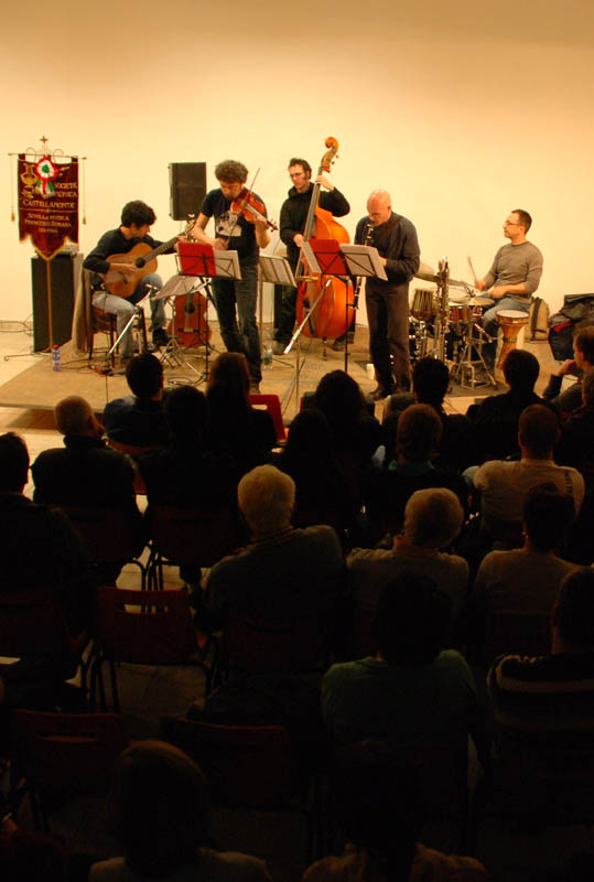 Il primo concerto di Primavera ospitato all'interno della nuova Sala Musica Michele Romana ha visto come protagonisti i ragazzi degli Oiseaux Ensemble che, guidati dall'estroverso clarinettista Marco Tardito, hanno entusiasmato gli appassionati presenti con il loro "jazz d'avanguardia italiano". Anche dall'esterno dell'edificio si è potuto vedere ed ascoltare il concerto con un curiosissimo colpo d'occhio. Tra il pubblico gente di tutte le età ha sottolineato con fragorosi applausi la disarmante bravura degli esecutori e l'originalità delle insolite sonorità proposte. Tutti i brani eseguiti sono stati composti dal leader del gruppo Marco Tardito la cui bravura è riconosciuta in tutta Italia. Al termine della serata molti commenti positivi sono stati spesi per il percussionista che ha saputo ricreare in modo realistico anche i più curiosi suoni della natura aiutando gli ascoltatori ad immaginare di essere fisicamente all'interno degli spazi evocati dalle melodie, come se il fiume Gange fosse veramente a pochi centimetri di distanza. Anche il contrabbassista ha catturato l'attenzione del pubblico e con la mimica della sua esecuzione ha trasmesso una sensazione di intensa immedesimazione nel ruolo e la coreografica immagine che quel grande strumento evoca ha fatto da spalla all'esecuzione del clarinettista che, alternandosi al soprano ed al basso, ha affascinato anche i più esperti con una impeccabile tecnica e una spettacolare interpretazione.