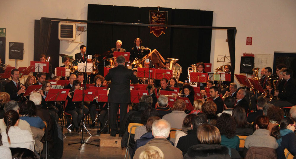 Con la neve che silenziosamente stava imbiancando il paesaggio, la Filarmonica di Castellamonte ha presentato il tradizionale Concerto di Santa Cecilia all'interno dell'Atrio della Scuola Media Cresto. Le sedie non sono state sufficienti ad accogliere i tanti appassionati che non hanno risparmiato applausi e lusinghe. Sì, perchè il maestro Francesco Fontan ha veramente centrato nel segno con la scelta dei brani ed i musicisti si sono impegnati per eseguire al meglio delle loro possibilità gli spartiti assegnati. Un concerto che ha visto come protagonisti un gran numero di solisti appartenenti a ciascuna delle sezioni musicali della banda: Diego ed Emanuele per i clarinetti, Andrea e Fabrizio per le trombe, Giorgio Gabriele e Valerio per i saxofoni, Marco e Jerry per i flicorni, Giovanni per i bassi. Si è assistito ad una vera ovazione per le due sinfonie rossiniane, la cavatina del Barbiere di Siviglia e la Cenerentola, a riprova che questo genere classico, troppo spesso trascurato dalle bande musicali, oltre a dare grandi soddisfazioni agli esecutori, coinvolge e appassiona un pubblico di tutte le età.