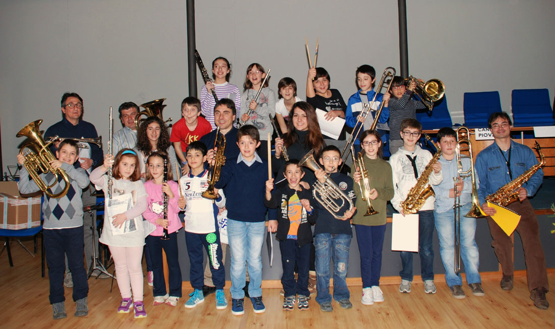 foto di gruppo della junior band al termine dell'esibizione