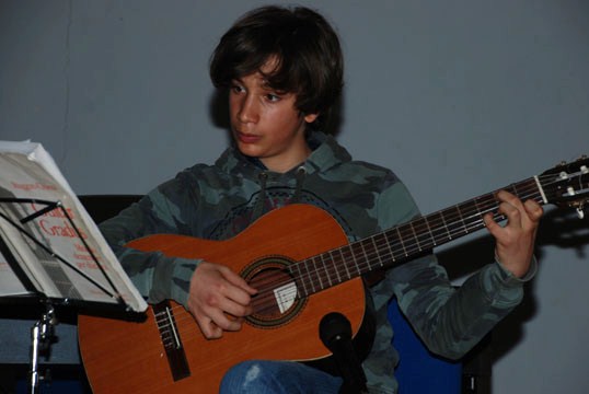 La Scuola di Musica "FRancesco Romana" ha accettato con entusiasmo l'invito a partecipare con i propri allievi alla cerimonia di consegna dei premi ai vincitori del concorso "Un poster per la pace" organizzato dai Lion's Club Alto Canavese (nell'anno del suo quarantesimo di fondazione) e Candia Lago presso l'auditorium della manifattura di Cuorgnè. Si sono esibiti quattro allievi dell'accademia di chitarra, Aurora Bagnato, Natasha Valdannini, Alex Cioaca e Davide Gelmetti. Gli stessi allievi del corso di chitarra diretto dal prof. Roberto Gentile si sono cimentati il giorno seguente nelle prove del concorso musicale organizzato a Favria. E' quindi stata la volta della junior band diretta dal prof. Bruno Lampa che è riuscito a mettere insieme tanti allievi provenienti dalle bande di Castellamonte, San Giorgio e Feletto. In tutto 25 allievi, molti dei quali al loro primo debutto in pubblico. L'emozione di suonare in un teatro di fronte a tanta gente è stata grande, ma gli applausi e i complimenti ricevuti sono stati un importante stimolo per tutti. E' stata la prima volta che gli allievi delle tre bande si sono incontrati e l'esperienza è stata sicuramente positiva per tutti. Ci si auspica che anche in futuro si possano trovare occasioni simili per suonare insieme, conoscersi e divertirsi. Nel resto del pomeriggio si sono esibiti gli allievi della Scuola Media Cresto di Castellamonte diretti dal prof. Giampiero Castagna, gli allievi della Scuola Media di Cuorgnè diretti dalla prof.ssa Serena Monica e gli allievi della scuola Media di Valperga e di Forno (tra questi ultimi si è distinta per bravura e disinvoltura la giovanissima Giorgia Goglio). Un particolare ringraziamento al prof. Francesco Villa della Scuola di Musica di Castellamonte che ha messo a disposizione il proprio personale pianoforte elettronico.