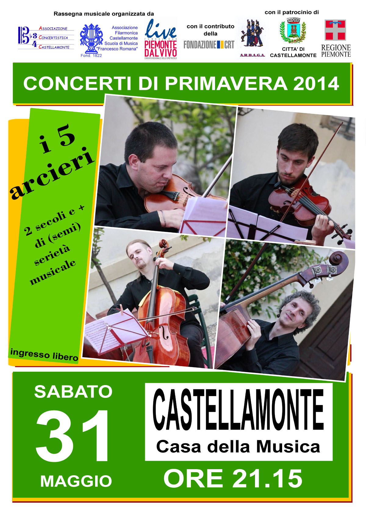 Sabato 31 maggio 2014 alle ore 21.15 nella prestigiosa Sala dei Concerti della Casa della Musica di Castellamonte, in Piazza della Repubblica 35, si il quintetto d'archi dal nome "i 5 arcieri" con uno spettacolo dal titolo "Due secoli e più di (semi) serietà musicale".