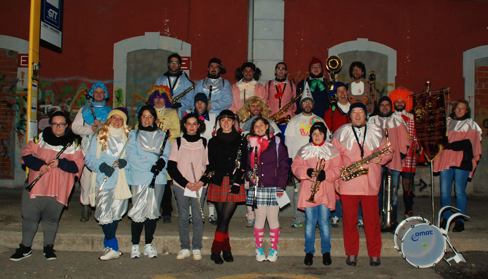 Nel resto del mondo è iniziata la Quaresima, è il mercoledì delle Ceneri, ma a Castellamonte no, il tempo Pasquale avrà inizio solo al termine del rogo del Re Pignatun. Questa "proroga" era stata concessa a suo tempo dal Vescovo della Diocesi di Ivrea Mons. Luigi Bettazzi e ogni anno il parroco tenta invano di porre fine a questa tradizione ... Ed ecco che la banda di Castellamonte, come accade da vari anni a questa parte, si presenta alla sfilata notturna indossando una simpatica divisa carnevalesca. Dopo i messicani, i diavoli, i gladiatori, i tricolori, i dalmata, gli antichi, questa volta la scelta è ricaduta sui bambini scolaretti. Il richiamo è ovviamente al progetto del 5 x mille che è partito a settembre e che nei prossimi giorni verrà ampliato anche ai bambini delle scuole materne. Tutti i musici si sono prestati con goliardia e hanno indossato colorati grembiulini e cartelle. I più spiritosi si sono presentati con ciuccio e pannolone e tutti hanno suonato allegramente le note della canzone del Carnevale. La banda ha preso posto dietro ai carri della Bela Pignatera Simona Garra e delle damigelle e davanti al carro del Re Pignatun, impersonato dall'ottico Leonardo Sirigu. Dietro di loro tanti bellissimi carri con tanti ragazzi in costume e tanta musica: tra questi anche il carro dei coscritti - classo 1997 - tra i quali erano presenti ben 4 membri della banda musicale. Dopo aver suonato lungo le vie del paese tra due ali di pubblico festante il corteo ha raggiunto Piazza della Repubblica e intorno al Re Pignatun la banda di Castellamonte si è cimentata in un breve carosello eseguendo due conversioni interne e due pettini. Il protagonista del Carnevale è quindi stato dato alle fiamme e mentre il fuoco divorava il povero Re Pignatun, faceva il suo ingresso in piazza la Quaresima, impersonata da una tetra maschera tutta nera dalle lunghe braccia nere.