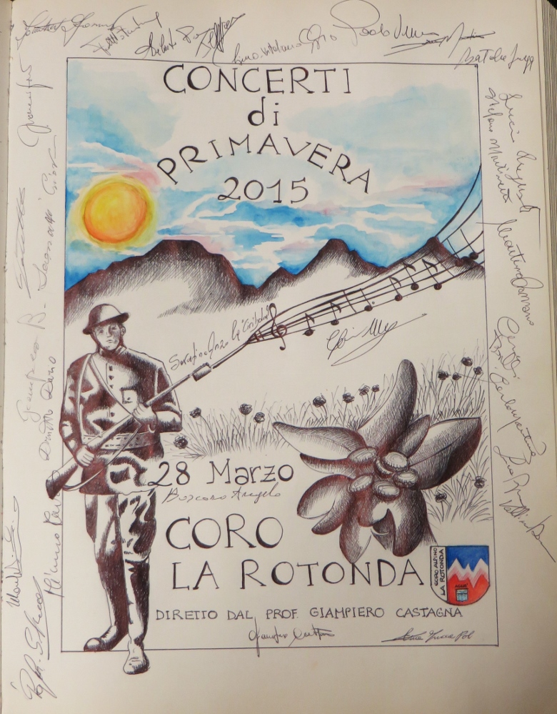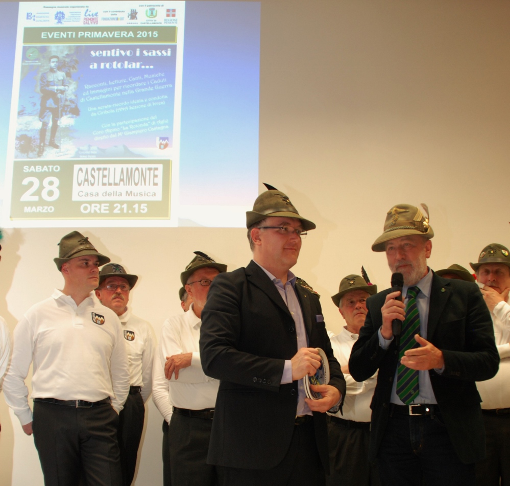 A Castellamonte è iniziata la stagione dei Concerti di Primavera 2015 organizzata dall'Associazione Concertistica Castellamonte in collaborazione con l'Associazione Filarmonica, la Fondazione Live Piemonte dal Vivo, con il patrocinio della Regione Piemonte, del Comune di Castellamonte, dell'ARBAGA Piemontese e con il prezioso contributo della Fondazione CRT. Sabato 28 marzo, all'interno della Sala dei Concerti "Michele Romana" si è esibito il Coro Alpino La Rotonda di Agliè diretto dal Maestro Giampiero Castagna. Il titolo della serata "Sentivo i sassi a rotolar..." ha introdotto il pubblico intervenuto in quello che è stato un susseguirsi di forti emozioni, di grande coinvolgimento. Non è stata solo musica, ma una partecipata commemorazione di tutti i caduti di Castellamonte che hanno perso la vita nel corso della Prima Guerra Mondiale. Si tratta di 141 soldati provenienti dal capoluogo e dalle frazioni andati avanti per il bene della nostra Nazione. In particolare lo storico dell'ANA Serafino Anzola, conosciuto dagli alpini come "Ciribola", ha accompagnato il pubblico con aneddoti e letture mozzafiato, intervallate dagli interventi del coro che ha proposto quelle melodie alpine, a tratti commoventi, a tratti sentimentali, che hanno raccontato alla perfezione il dramma vissuto cent'anni fa dai nostri soldati. Con la voce rotta dalla commozione Chantal Gaido e Maria Linda Battaglia hanno proposto alcune letture che hanno evidenziato i gesti eroici dei loro concittadini. Due momenti molto intensi sono stati proposti dall'alpino Enzo Zucco, promotore della serata, che ha eseguito al sax soprano e contralto due struggenti melodie con sullo sfondo i nomi e i volti di oltre quaranta Castellamontesi Caduti, giovani soldati tra i 20 e i 23 anni. Particolare attenzione è stata dedicata al sottotenente Ferruccio Talentino, insignito delle Medaglia d'Oro al Valor Militare per aver saputo guidare il suo plotone alla conquista del Monte Busa Alta dando la vita nell'assaltare a baionetta la trincea nemica. La sua Medaglia d'Oro brillava con orgoglio sul vessillo della Sezione ANA di Ivrea presente in sala a fianco del gagliardetto del gruppo di Castellamonte. Al termine della serata in sala il pubblico è rimasto con il fiato sospeso, commosso e coinvolto ed al presidente della Filarmonica Giacomo Spiller è spettato il compito non semplice di chiudere l'incontro con alcune riflessioni sull'importanza di ricordare e di portare questi ricordi ai giovani che oggi si trovano in una situazione di precaria libertà ed effimera pace. Ha portato il saluto dell'Amministrazione l'Assessore alla Cultura Nella Falletti ed è intervenuto il Presidente della Sezione ANA di Ivrea Marco Barmasse che ha fortemente sostenuto la realizzazione di questa serata. Il Coro ha salutato con Il Signore delle Cime, una preghiera che con estrema dolcezza sa arrivare al cuore della gente. Al termine della serata tutti i musici hanno apposto la loro firma sul Libro d'Oro della Filarmonica dipinto per l'occasione da Alice Zucca Pol e infine si sono rilassati con una ristoratrice parentesi gastronomica accompagnata ancora da qualche canzone alpina. Il bilancio della prima serata è stato assolutamente positivo sotto ogni punto di vista e l'organizzazione è già in moto per proporre il secondo appuntamento che vedrà come protagonisti i ragazzi della Orchestra a fiati giovanile In Crescendo che si esibirà nella Chiesa Parrocchiale sabato 11 aprile alle 21.15, come da tradizione ad ingresso completamente gratuito.