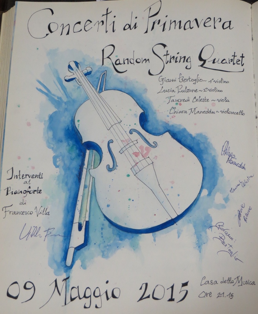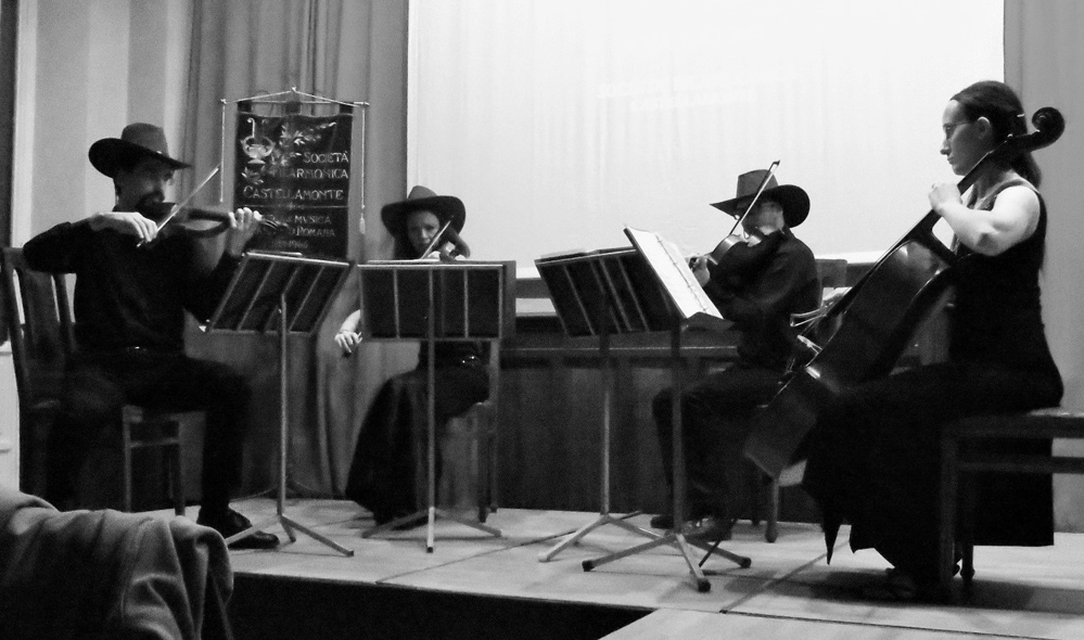 Nella seconda parte del concerto si è esibito il quartetto d’archi, costituito  nel 2005 sotto il nome di “Random String Quartet”, che ha proposto dei grandi  classici della musica utilizzati come colonne sonore di famosi film, quasi  accompagnando il pubblico in un percorso musicale e visivo denso di emozioni e  di suggestioni.