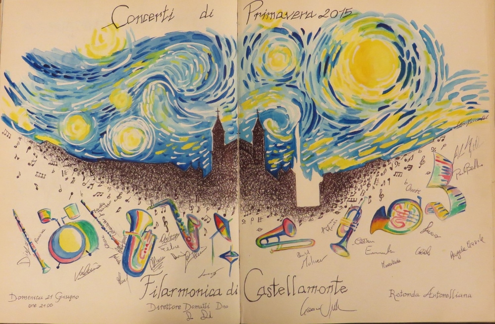 L’Associazione Filarmonica Castellamonte ha chiuso la brillante stagione dei Concerti di Primavera 2015 con il proprio tradizionale concerto. Fortunatamente il tempo è stato clemente e il concerto si è potuto svolgere all'aperto, nella Rotonda Antonelliana che ha caratteristiche acustiche ed estetiche di grandissimo pregio, ricreando un'atmosfera quasi magica, resa ancor più suggestiva dai giochi di luce proiettati sui rossi mattoni che la contraddistinguono. La serata si è aperta con l'esibizione della formazione giovanile composta dagli allievi di Castellamonte e Feletto seguiti dal Maestro Bruno Lampa. Il pubblico è stato coinvolto nell'esecuzione e non ha risparmiato applausi ai giovanissimi musici che non hanno fatto trasparire alcuna emozione. Dopo la premiazione del concorso di disegno proposto nell'ambito del Progetto Musicale 5xmille nelle scuole primaria e dell'infanzia di Castellamonte, il palco è stato occupato dalla Filarmonica maggiore che, diretta dal maestro Dino Domatti, ha eseguito alla perfezione otto brani con stili e caratteristiche differenti. Si sono alternati brani originali per banda di autori italiani ed olandesi con colonne sonore di due noti film di Ennio Morricone. Benchè non fosse sabato sera, benchè a Torino ci fosse stata la visita di Papa Francesco, benchè la temperatura sia scesa abbastanza velocemente, il pubblico si è presentato numeroso e ha seguito con interesse e attenzione l'intera serata. Al microfono si sono alternati prima l'Assessore alla Cultura Nella Falletti che ha molto apprezzato i miglioramenti musicali evidenziati dalla Filarmonica negli ultimi due anni e poi il parroco don Angelo Bianchi che ha particolarmente gradito l'esecuzione della banda giovanile. Il concerto è stato presentato dalla Maestra Lilliana Venturino e il presidente della Filarmonica Giacomo Spiller ha ringraziato pubblicamente tutti i musici per il grande impegno profuso negli ultimi venti giorni in cui, oltre al presente concerto e alle prove settimanali, si sono susseguiti i concerti ad Agliè ed in Svizzera a Novazzano, le sfilate in Svizzera e a Castellamonte in occasione del Corpus Domini, dell'inaugurazione della Mostra della Ceramica e di un servizio funebre. Prima di un meritato periodo di ferie la Filarmonica si esibirà ancora giovedì 25 giugno in occasione della Festa Patronale di San Luigi a Spineto con un concerto in cui eseguirà anche tre brani insieme alla Filarmonica Spinetese a suggellare un completo riavvicinamento delle due formazioni, abbandonando antichi campanilismi ed inspiegabili rivalità di paese... un bel messaggio di civiltà e collaborazione.