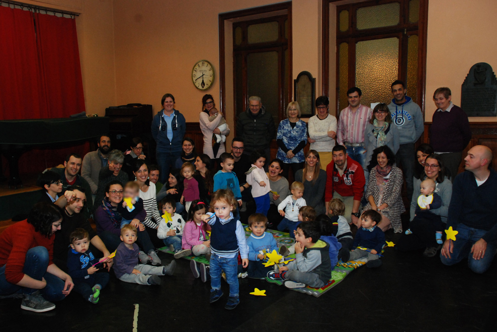 | la sala dei concerti invasa da piccolissimi allievi, dai genitori e dai nonni | ||