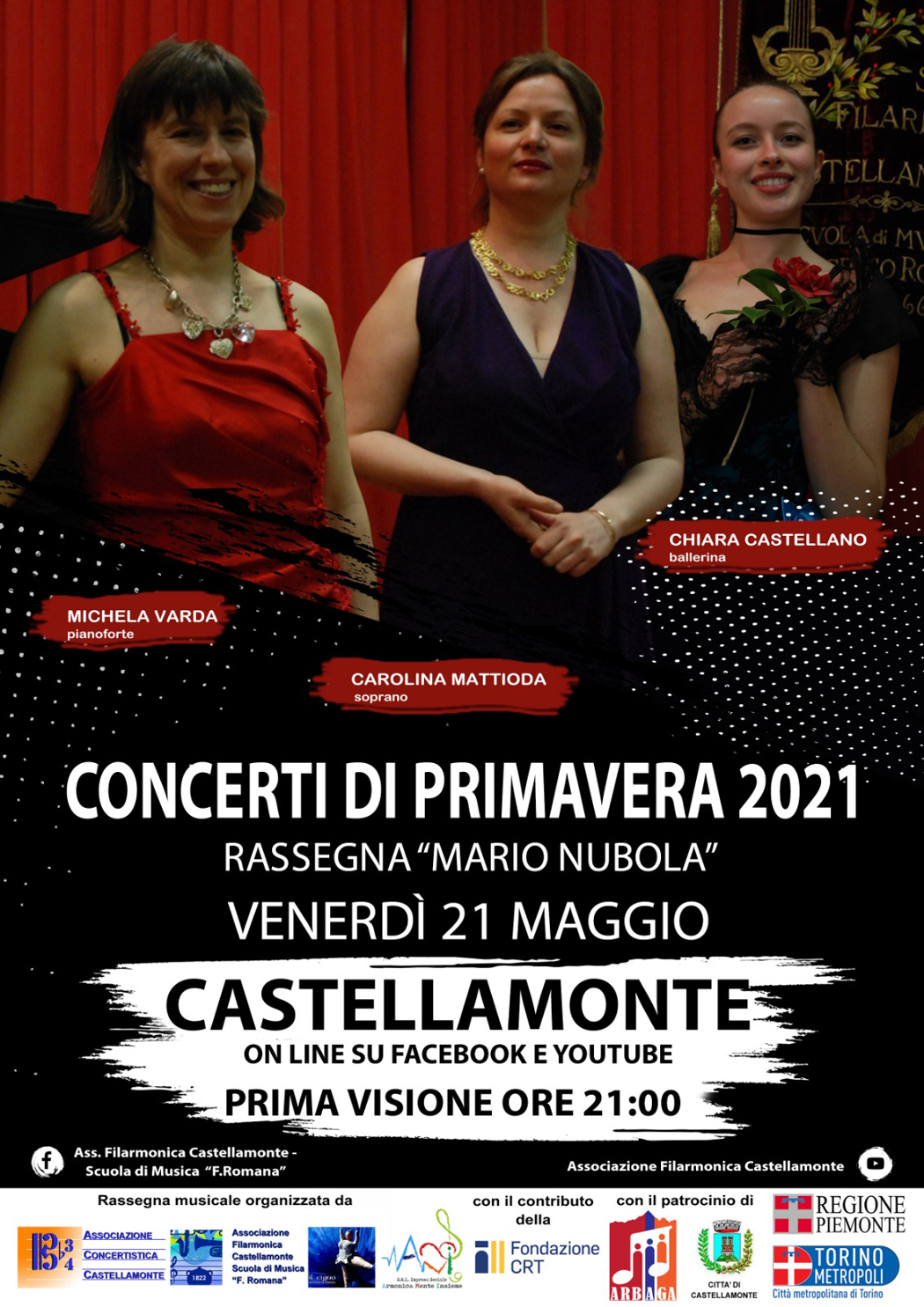 La stagione dei Concerti di Primavera di Castellamonte riparte dal classico, ma on-line. Una tradizione iniziata a Castellamonte nel 1946, mai interrotta e neanche l’emergenza sanitaria è riuscita a bloccare la macchina organizzatrice che si è dotata delle migliori tecnologie esistenti sul mercato per poter presentare concerti di altissimo livello on line. Venerdì 21 maggio alle ore 21.00 si apre la Stagione dei Concerti di Primavera, dedicata al ricordo del Maestro Mario Nubola, con un concerto classico che vede come protagoniste la soprano Carolina Mattioda, canavesana originaria di Ozegna, e la pianista Michela Varda, un tempo insegnante di pianoforte proprio a Castellamonte. In poco meno di 40 minuti sono state condensate le più celebri pagine della lirica italiana, attingendo dalle opere di Puccini, Verdi e Mascagni. Nessuna location poteva essere migliore del prestigioso salone dei concerti della Filarmonica di Castellamonte, utilizzando lo storico pianoforte gran coda che custodisce gelosamente la firma autografa di Giacomo Puccini. Per la registrazione del concerto, ecco sul palco le artiste, ma in platea niente pubblico, solo tante telecamere e microfoni. Una sensazione mai vissuta prima: è stato molto difficile fare a meno della presenza del pubblico, che ti guarda, che si lascia trasportare dalla melodia e che alla fine ti ricompensa e sostiene con il suo applauso. La tecnologia ha però dei lati positivi e così è nata l’idea di realizzare anche alcune coreografie sulle musiche eseguite durante la registrazione del concerto e questa volta nella platea si è esibita Chiara Castellano, una giovanissima allieva della Scuola di danza Il Cigno asd, con i costumi realizzati dall’insegnante Costanza Schiesaro che ha seguito con grande coinvolgimento la registrazione di tutte le esibizioni. Chi avrà il piacere di assistere al concerto verrà altresì accompagnato all’ascolto dalla presentatrice Chantal Gaido. Sul canale You Tube e sulla pagina Facebook dell’Ass.Filarmonica Castellamonte si potrà assistere tutti insieme alla prima visione, con la possibilità di commentare e vivere il concerto quasi sentendo la presenza degli altri spettatori virtualmente a fianco. Sui canali social il concerto resterà comunque gratuitamente visibile anche in seguito, anche per chi volesse rivederlo una seconda volta. L’Associazione Concertistica Castellamonte ha già altri due concerti pronti per la presentazione on linee e altri sono in fase di produzione, grazie alla collaborazione con l’Associazione Filarmonica e l’Armonica Mente Insieme srl Impresa Sociale, con il patrocinio dell’ARBAGA Piemonte, della Regione Piemonte, della Città Metropolitana di Torino, della Città di Castellamonte e il sempre prezioso sostegno della Fondazione CRT. Programma del concerto |