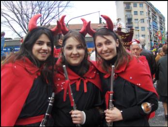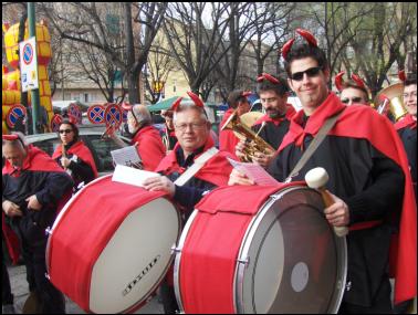 La Filarmonica al gran completo è andata a Torino per il primo carnevale del quartiere Madonna di Campagna e ha sfoggiato con non poca goliardia il nuovo costume carnevalesco. I cinquanta diavoletti si sono lasciati comandare a bacchetta da un celestiale angioletto impersonato dal Maestro Francesco Fontan. Il servizio d'ordine ha creato un varco tra la tanta gente intervenuta e la banda ha potuto aprire la sfilata dei carri allegorici. Tra i carri più applauditi il gruppo di ballerine brasiliane che hanno danzato anche sulle note della banda musicale. Lungo tutto il percorso le bancarelle del mercato hanno fatto da cornice alla sfilata e le offerte degli imbonitori si sono confuse con gli applausi di bambini ed anziani. I musici hanno suonato con allegria per più di due ore e al termine si sono esibiti in un piccolo carosello in Piazza Villari. Sul sito internet sono state subito inserite le fotografie più belle scattate in questa simpatica giornata.